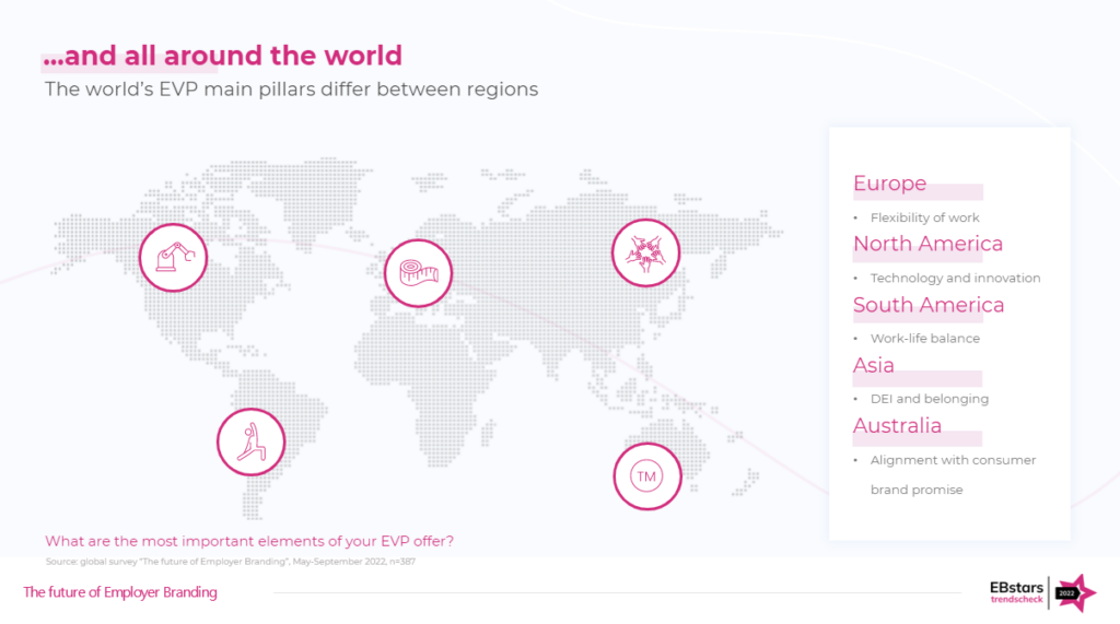 • statistics/resources/analytics around EB – for instance, what percent of companies have their EVP defined, what the most/least used KPIs are; what biggest eb challenges companies are facing globally;